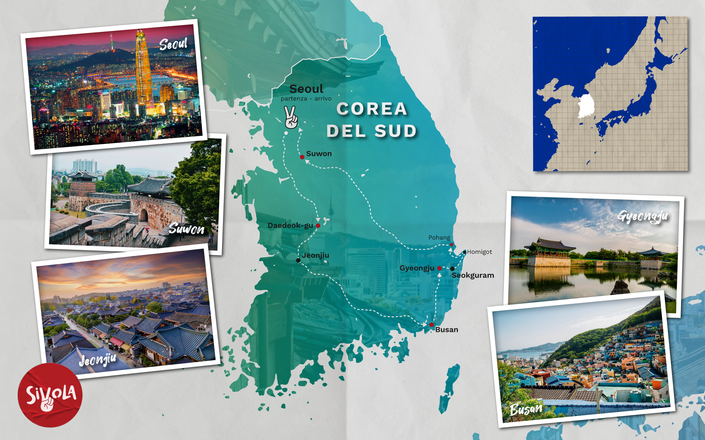 Oggi salutiamo Gyeongju e ci dirigiamo verso il tempio sotterraneo di Seokguram, un eremo appartenente al complesso del tempio di Bulguksa: la sua grotta sovrasta il Mar del Giappone, e contiene alcune delle principali sculture buddhiste del mondo. Ma non finisce qua. La seconda tappa del viaggio è Pohang, la terza Homigot: qui, all'estremità più orientale della penisola coreana, si trova il faro più grande della Corea.
